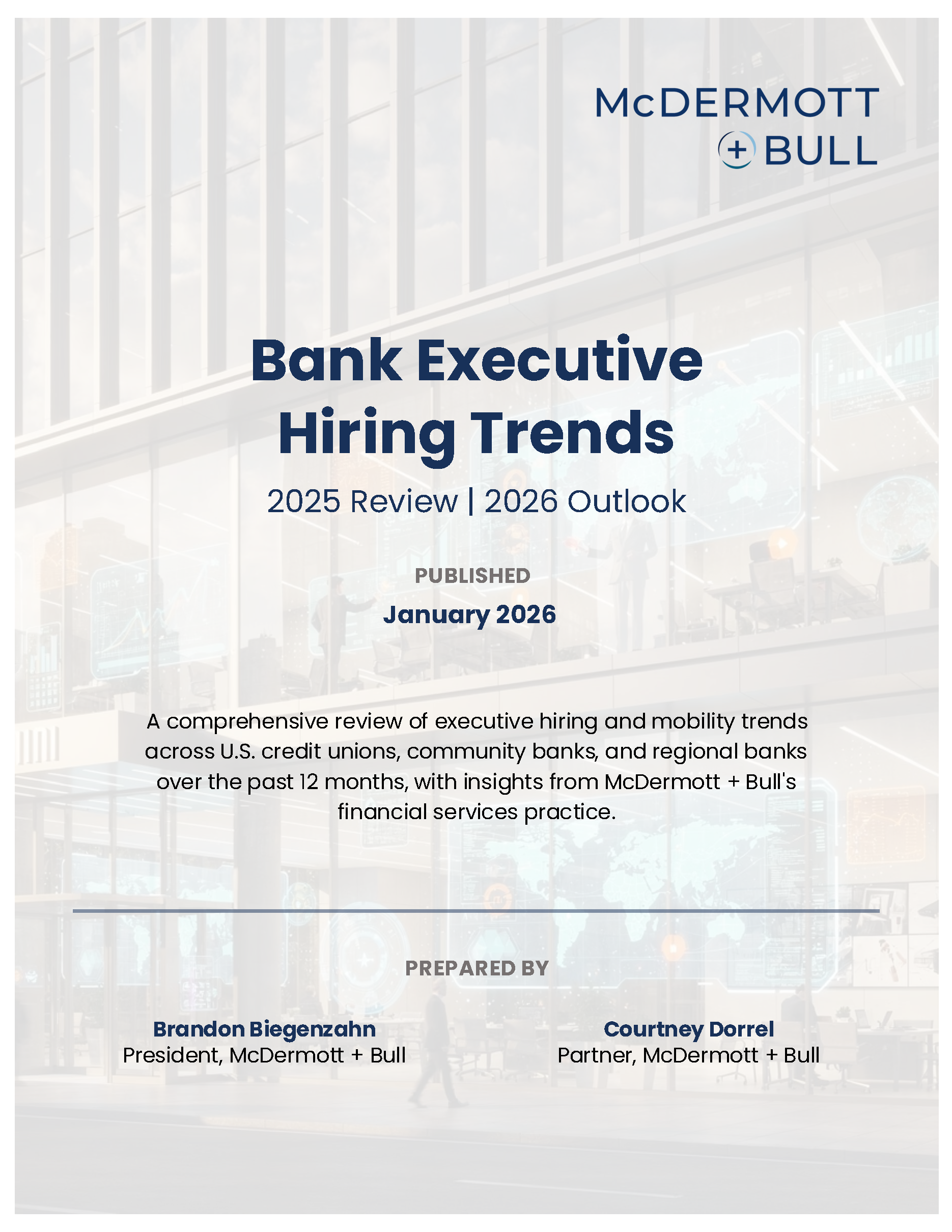 Herein, you will find a lookback on the previous 12 months of executive hiring and mobility within community and regional banks (up to $100 billion in assets) across the U.S., as well as within McDermott + Bull’s financial services practice. In addition to bank data, you will also find a cross-pollination with credit union metrics to provide the most comprehensive overview of the market.